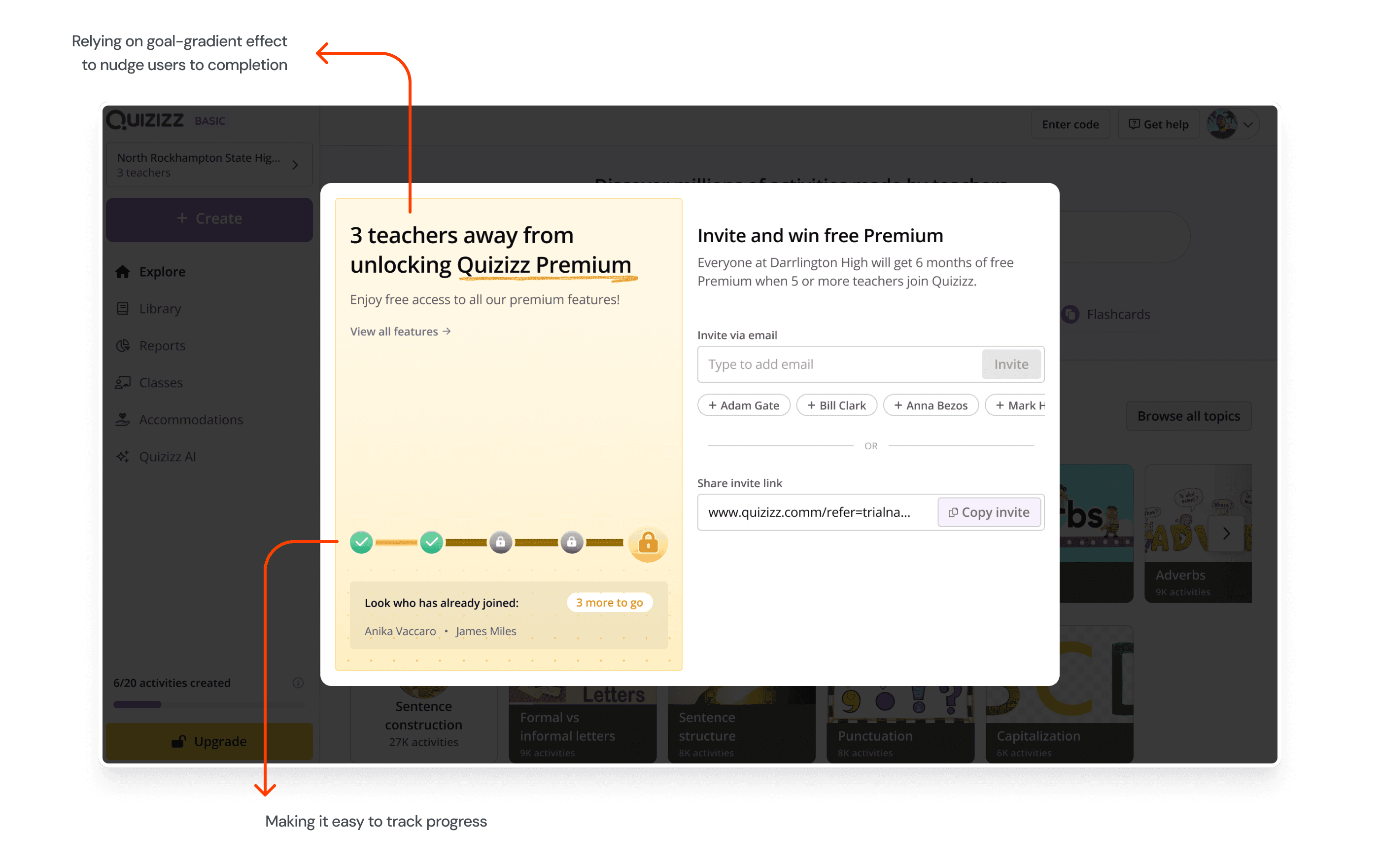 Gave teachers clear visibility into who they invited and where rewards